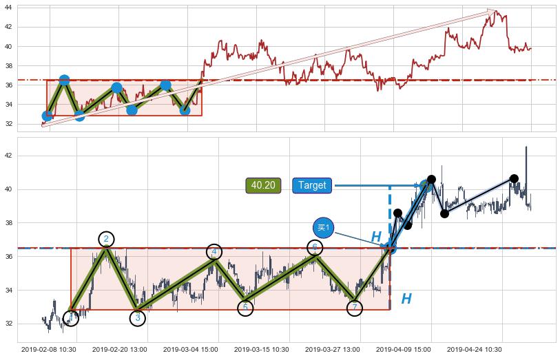 ➣ 最小中继整理涨幅→𝐇: 3.700 (上平行阻力线与下平行支撑线的垂直距离)