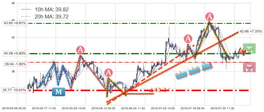 ♘ 阻力价格位43.65,可信任强度55.94%,距离最后交易2019-07-31 15:00形成的收盘价格39.75相差 +9.81%