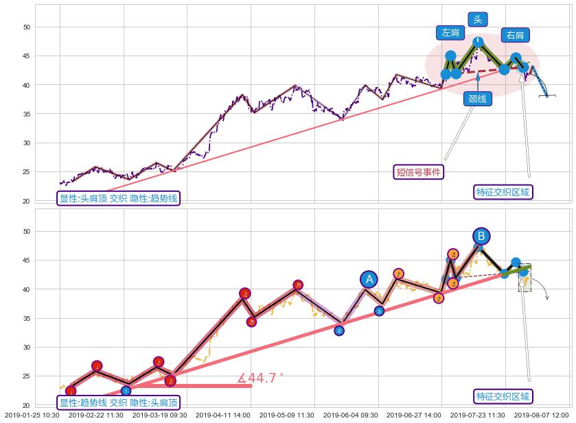 从2019-07-23 09:30至2019-07-31 15:00,共包含42个小时,阶段股价下跌-1.74%,阶段股价变动位移路程比: 1 : 13