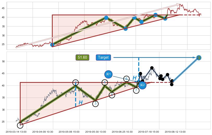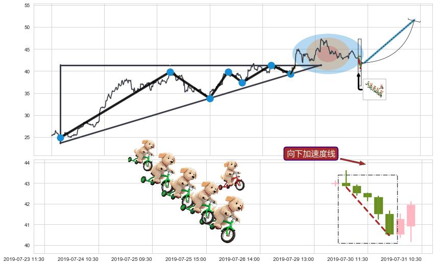 ➢ 最后的上涨趋势2019-01-30 13:00至2019-07-22 15:00:存在破位迹象,后续小调整或者反转下跌