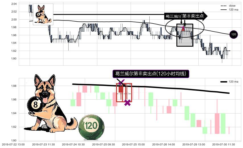 ⚀ 2019-07-25 11:30:00-小时显现 葛兰威尔均线 120小时均线 第⑧卖出点 下降趋势的中继信号,后市看跌,卖出信号