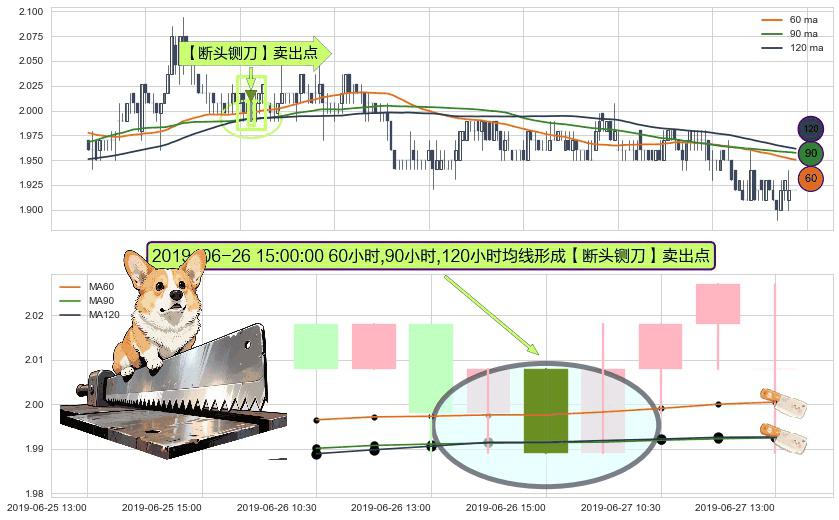 ⚀ 2019-06-26 15:00:00小时显现 60小时-90小时-120小时均线 【断头铡刀】卖出点 看空信号,后市看跌,卖出