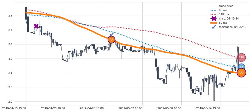 下跌趋势04-15 15:00-05-16 09:30,均线50确认关键阻力1处