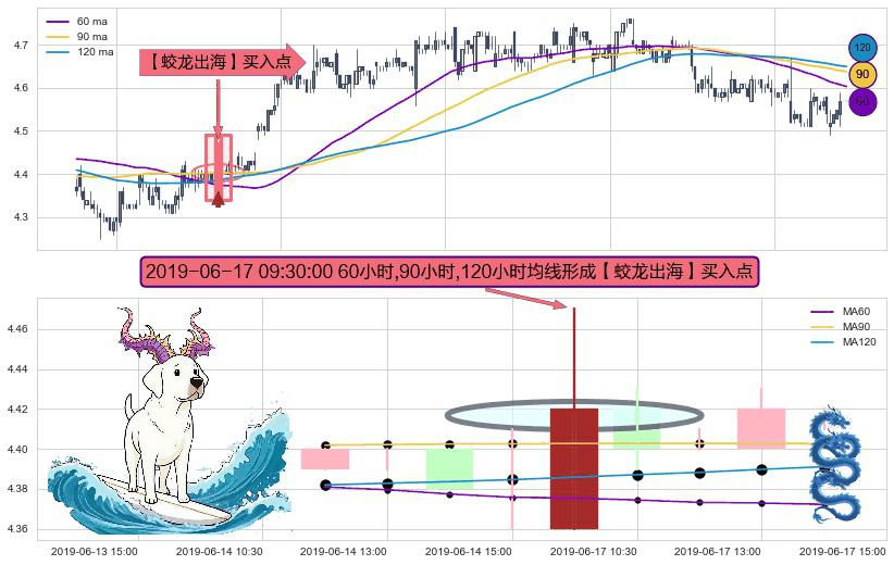 形态多维评估: ⚀ 2019-06-17 09:30:00小时显现 60小时-90小时-120小时均线 【蛟龙出海】买入点 看多信号,后市看涨,买入