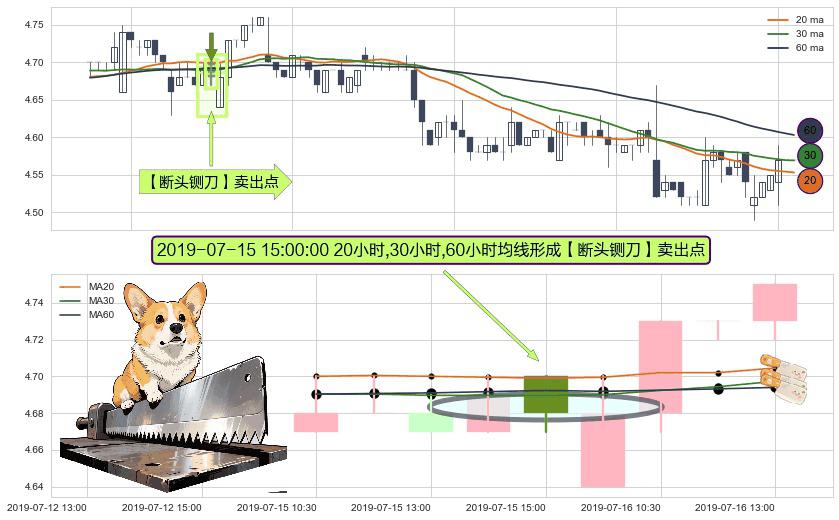 形态多维评估: ⚀ 2019-07-15 15:00:00小时显现 20小时-30小时-60小时均线 【断头铡刀】卖出点 看空信号,后市看跌,卖出