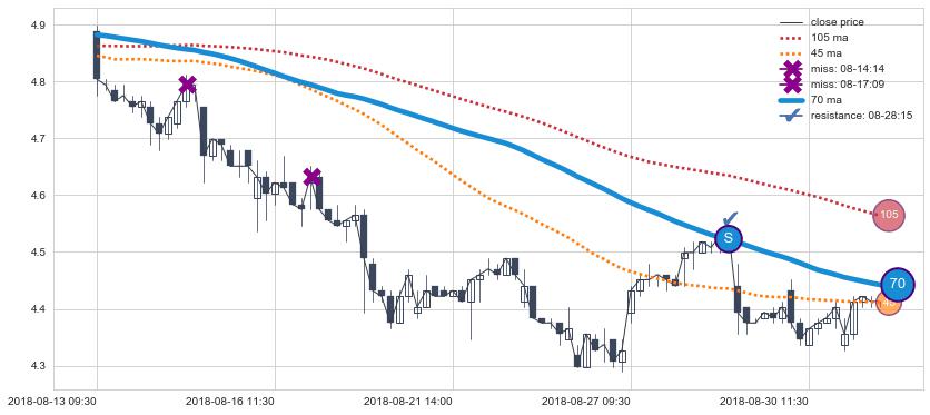 下跌趋势08-13 09:30-08-31 14:00,均线70确认关键阻力1处
