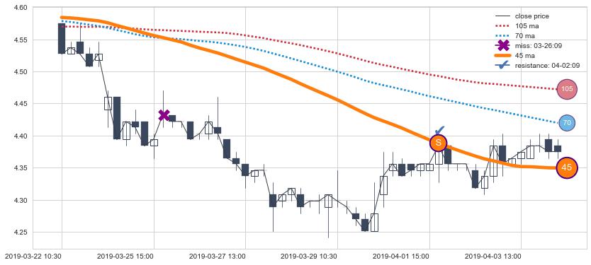 下跌趋势03-22 10:30-04-04 10:30,均线45确认关键阻力1处