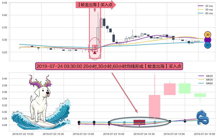 ⚀ 2019-07-24 09:30:00小时显现 20小时-30小时-60小时均线 【蛟龙出海】买入点 看多信号,后市看涨,买入