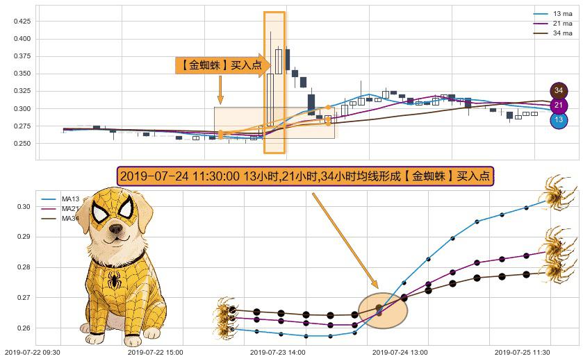 ⚀ 2019-07-24 11:30:00小时显现 13小时-21小时-34小时均线 【金蜘蛛】买入点 看多信号,后市看涨,买入