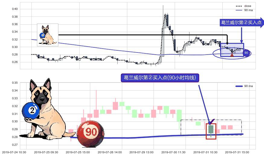 ⚀ 2019-07-31 09:30:00-小时显现 葛兰威尔均线 90小时均线 第②买入点 上升趋势的中继信号,后市看涨,买进信号
