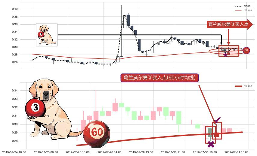⚀ 2019-07-31 10:30:00-小时显现 葛兰威尔均线 60小时均线 第③买入点 上升趋势的中继信号,后市看涨,买进信号