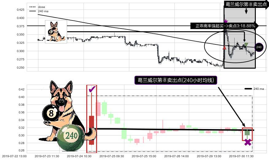 ⚀ 2019-07-30 10:30:00-小时显现 葛兰威尔均线 240小时均线 第⑧卖出点 下降趋势的中继信号,后市看跌,卖出信号