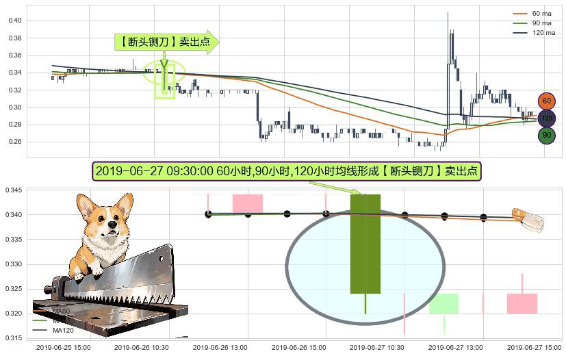 ⚀ 2019-06-27 09:30:00小时显现 60小时-90小时-120小时均线 【断头铡刀】卖出点 看空信号,后市看跌,卖出