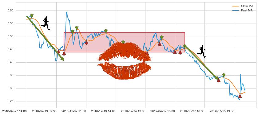 09-26 14:00至04-18 15:00 慢线与快线多次接触,存在上下穿越,有缠绕