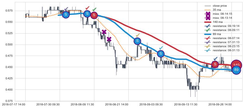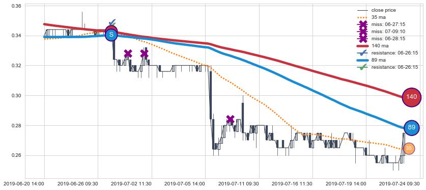 ⚂ 2019-07-24 10:30:00-小时均线向上突破,2019-07-30 10:30:00-小时重新下穿均线破位,均线阻力再次生效