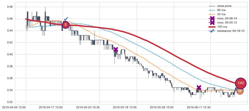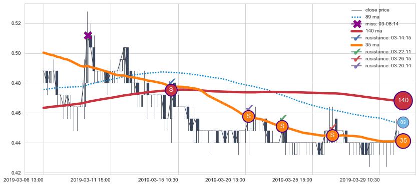 ⚄ 均线向上突破后价格上探力度高,正乖离率高,再次向下破位后维持原均线下跌趋势【弱】