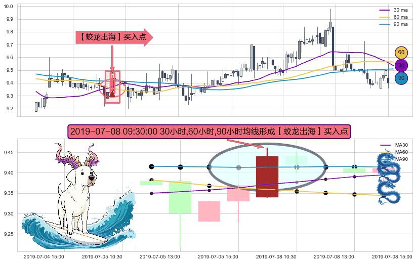 ⚀ 2019-07-08 09:30:00小时显现 30小时-60小时-90小时均线 【蛟龙出海】买入点 看多信号,后市看涨,买入