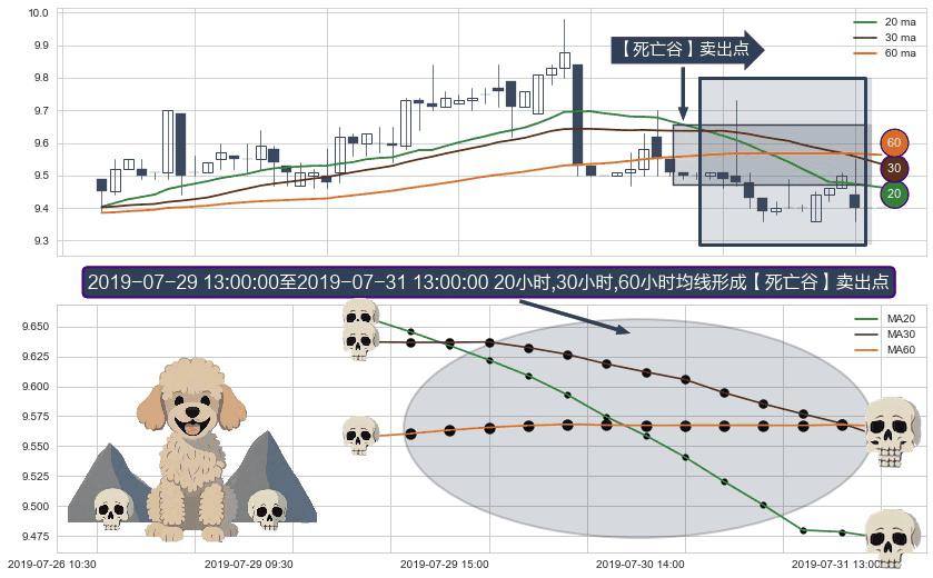⚀ 2019-07-29 14:00:00-小时至2019-07-31 13:00:00-小时显现 20小时-30小时-60小时均线 【死亡谷】卖出点 看空信号,后市看跌,卖出