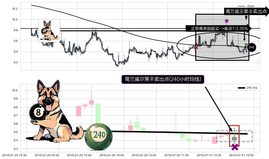 ⚀ 2019-07-31 13:00:00-小时显现 葛兰威尔均线 240小时均线 第⑧卖出点 下降趋势的中继信号,后市看跌,卖出信号