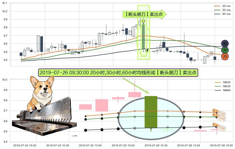 ⚀ 2019-07-26 09:30:00小时显现 20小时-30小时-60小时均线 【断头铡刀】卖出点 看空信号,后市看跌,卖出