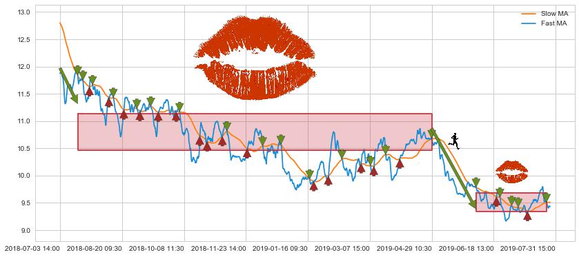 07-17 10:30至04-29 10:30 慢线与快线多次接触,存在上下穿越,有缠绕