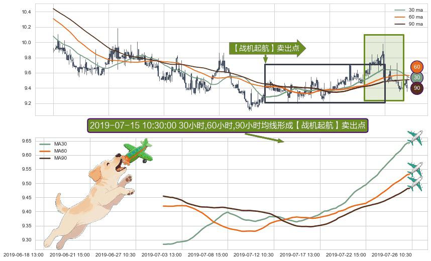 ⚀ 2019-07-02 10:30:00小时-2019-07-26 09:30:00小时显现 30小时-60小时-90小时均线 【战机起航】卖出点 看空信号,后市看跌,卖出