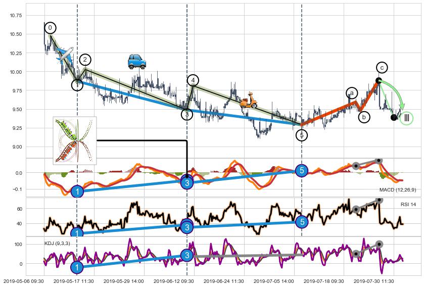 ➣ a,c调整浪MACD, RSI, KDJ走势都【未出现】背离,abc走势延续, 5浪反转概率增强