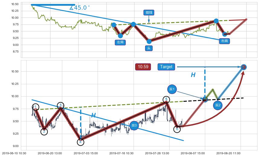 从2019-05-07 09:30至2019-07-18 10:30,共包含296个小时,阶段股价下跌-9.14%,阶段股价变动位移路程比: 1 : 12,下跌趋势角度: 45.0
