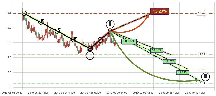 ➣ 循环浪继续向下【平均值】位置(10-03:12, 8.60),匹配聚类样本比例57.78%, 可能性概率32.82%