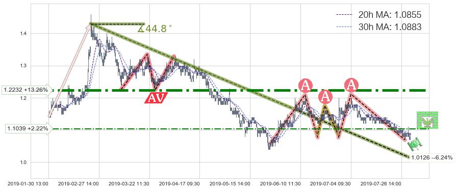 ♘ 阻力价格位1.2232,可信任强度93.22%,距离最后交易2019-07-31 15:00形成的收盘价格1.0800相差 +13.26%
