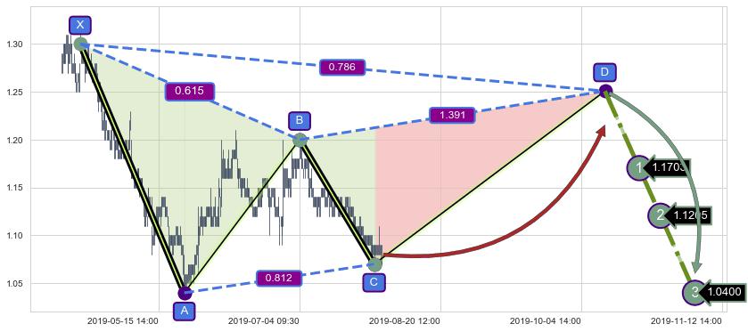 ➣ D点拟合预测价格1.2508,距离最后交易收盘价格1.0800相差 +15.81%