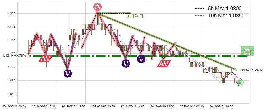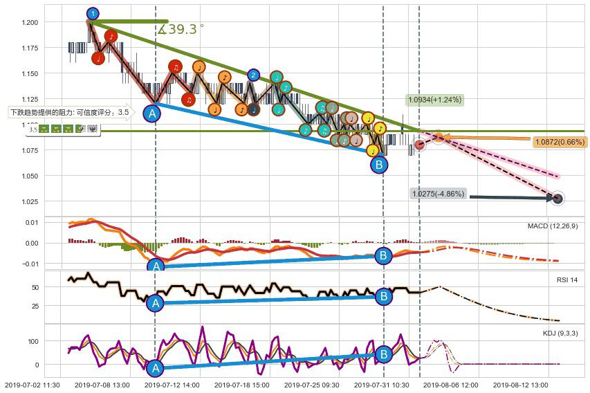 ➢ 预测:2019-08-02 10:00,【小幅反弹】稳定目前下跌趋势的前提下,预测价格:1.0872