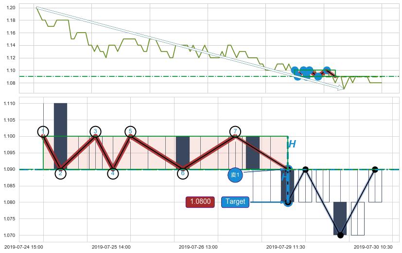 ➢ 【已达成】最小【整理】第一目标价格→(07-29:10: 1.0800 ), 后续继续【整理】下跌动力微弱,下跌较小