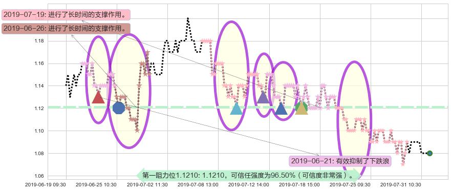 ♘ 阻力价格位1.1210,可信任强度96.50%,距离最后交易2019-07-31 15:00形成的收盘价格1.0800相差 +3.79%