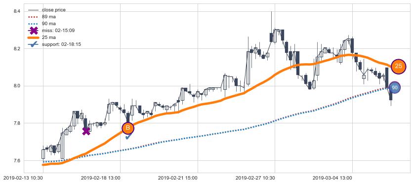 上涨趋势02-13 10:30-03-06 10:30,均线25确认关键支撑1处