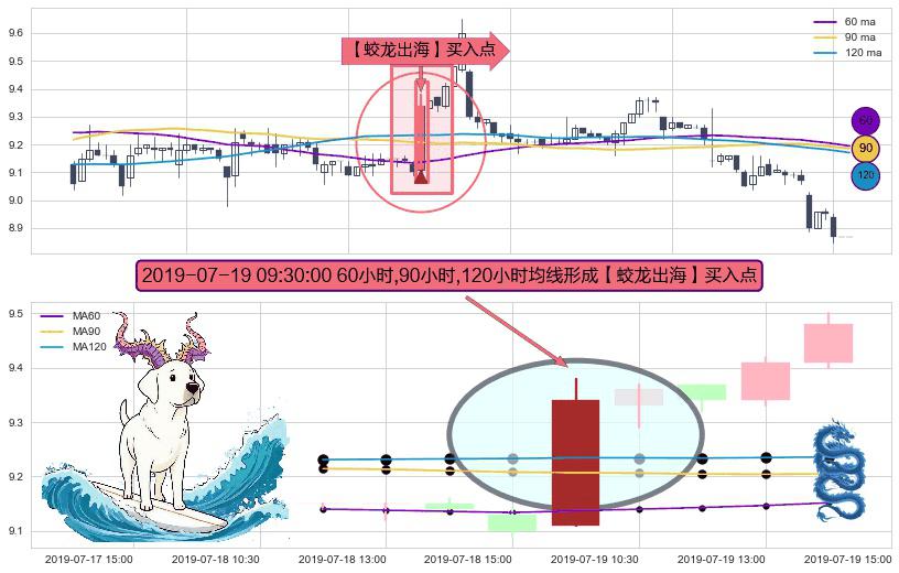 ⚀ 2019-07-19 09:30:00小时显现 60小时-90小时-120小时均线 【蛟龙出海】买入点 看多信号,后市看涨,买入