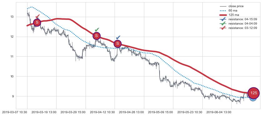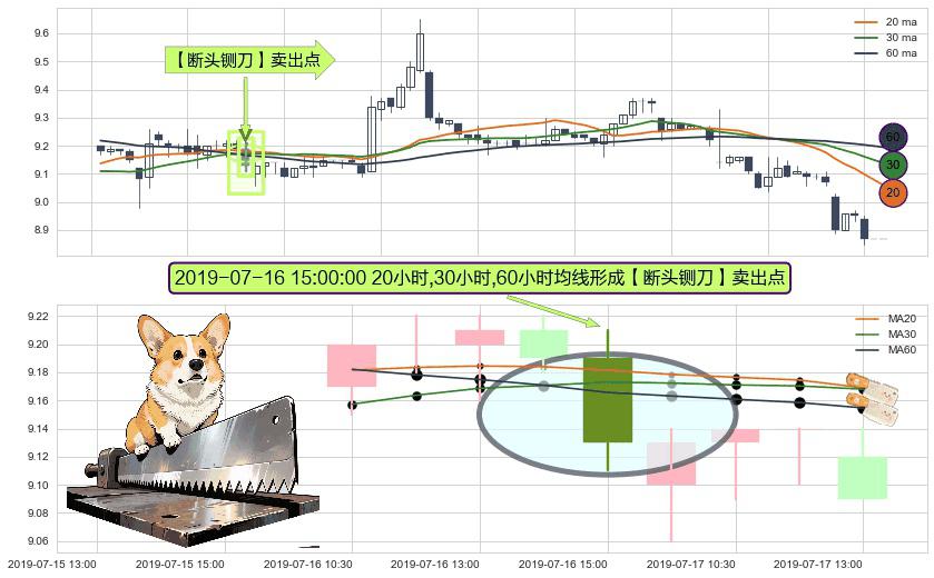 ⚀ 2019-07-16 15:00:00小时显现 20小时-30小时-60小时均线 【断头铡刀】卖出点 看空信号,后市看跌,卖出