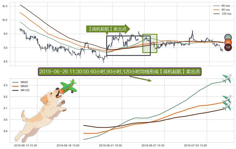 ⚀ 2019-06-18 15:00:00小时-2019-07-04 15:00:00小时显现 60小时-90小时-120小时均线 【战机起航】卖出点 看空信号,后市看跌,卖出