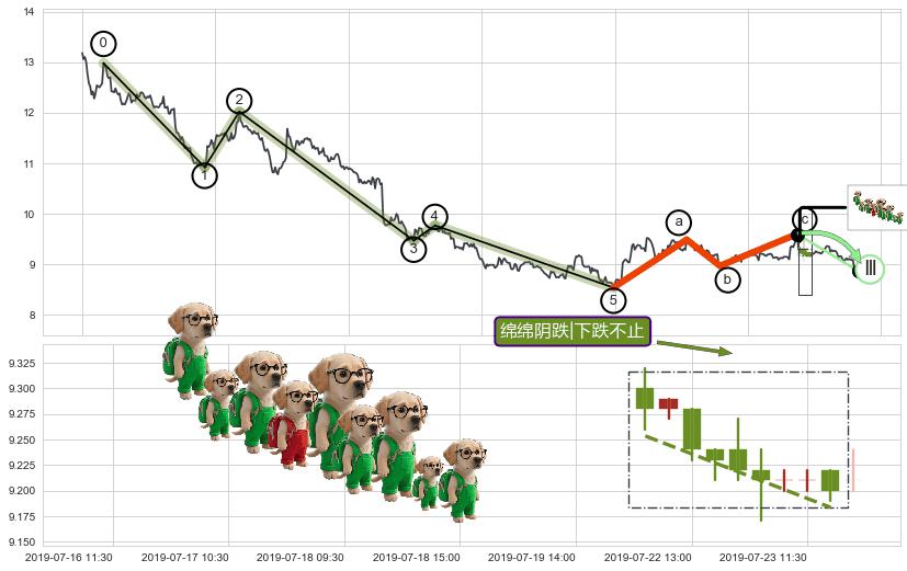 从2019-07-19 15:00至2019-07-31 15:00,共包含49个小时,阶段股价下跌-7.81%,阶段股价变动位移路程比: 1 : 2