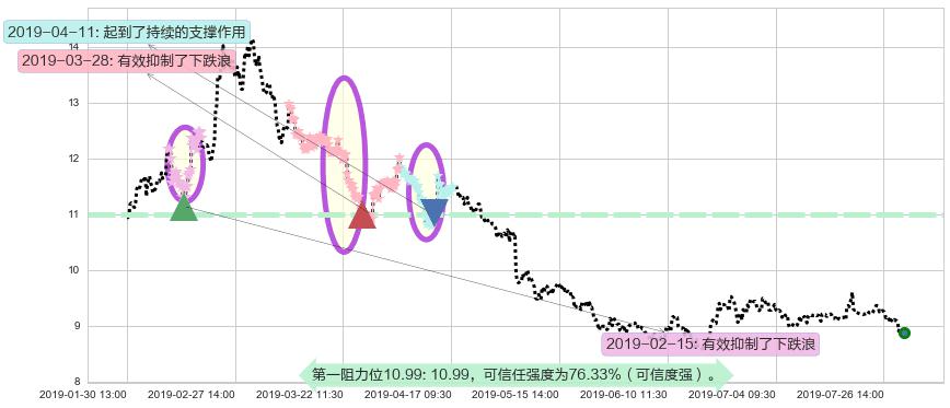 ♘ 阻力价格位10.99,可信任强度76.33%,距离最后交易2019-07-31 15:00形成的收盘价格8.87相差 +23.92%
