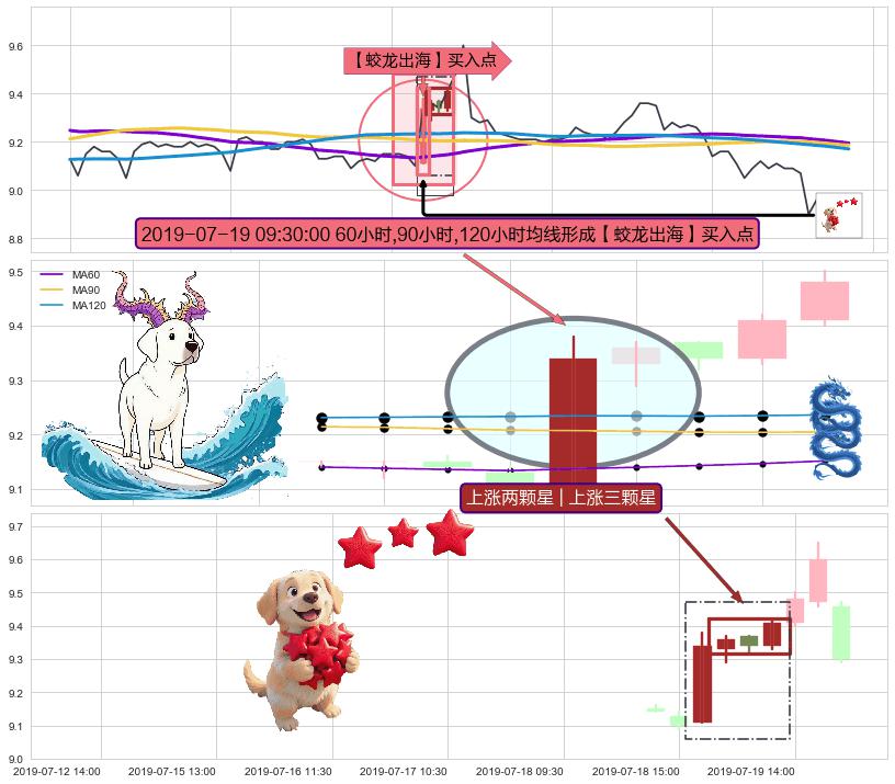 从2019-07-02 09:30至2019-07-19 15:00,共包含84个小时,阶段股价上涨1.30%,阶段股价变动位移路程比: 1 : 24