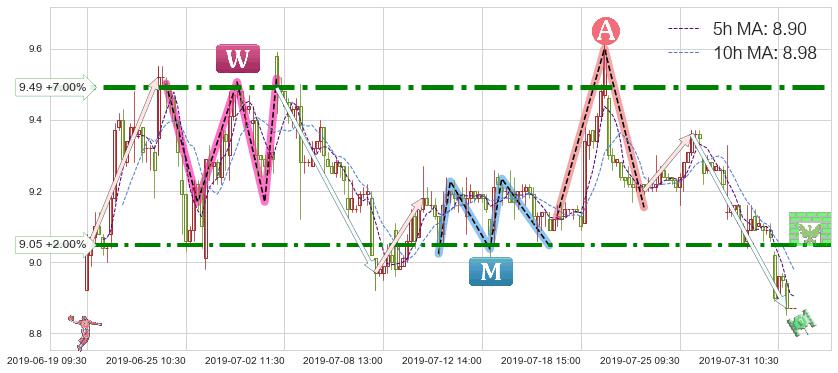 ♘ 阻力价格位9.05,可信任强度74.94%,距离最后交易2019-07-31 15:00形成的收盘价格8.87相差 +2.00%
