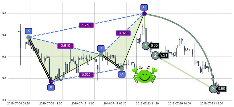 ➣ 已完成【螃蟹】形态起点X: 07-03:15, 终点D: 07-19:15, 共73交易小时