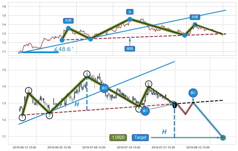 ➣ 最小反转跌幅→𝐇: 0.203385 (头部与颈线垂直距离)