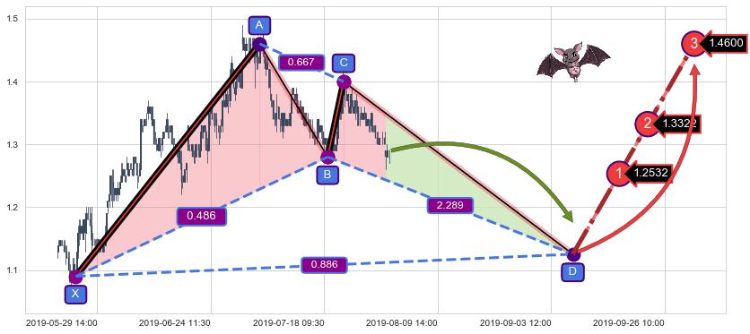 ➣ 未完成【蝙蝠】形态起点X: 05-24:13, 已到达C点: 07-22:15, 预测最终D点: 09-06:13, 共434交易小时