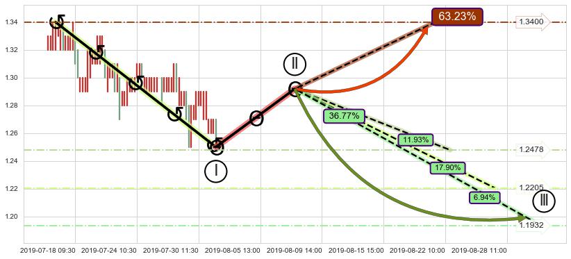 ➣ 循环浪继续向下【平均值】位置(08-27:12, 1.2205),匹配聚类样本比例48.69%, 可能性概率17.90%
