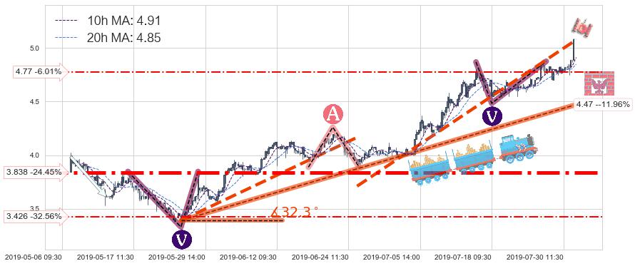 ♞ 10小时均线:4.91,20小时均线:4.85→ 快线>慢线