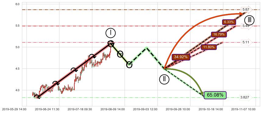 ➢ 循环浪继续向上【最低】位置(10-18:13, 5.11),匹配聚类样本比例33.79%, 可能性概率11.80%