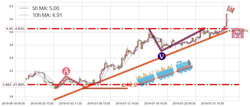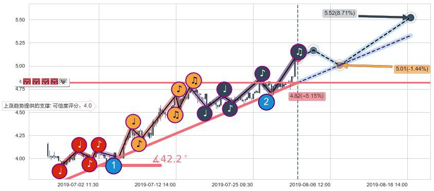 ➣ 预测:2019-08-07 12:00,【小幅回撤】稳定目前上涨趋势的前提下,预测价格:5.01