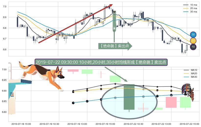 ⚀ 2019-07-22 09:30:00小时显现 10小时-20小时-30小时均线 【绝命跳】卖出点 看空信号,后市看跌,卖出